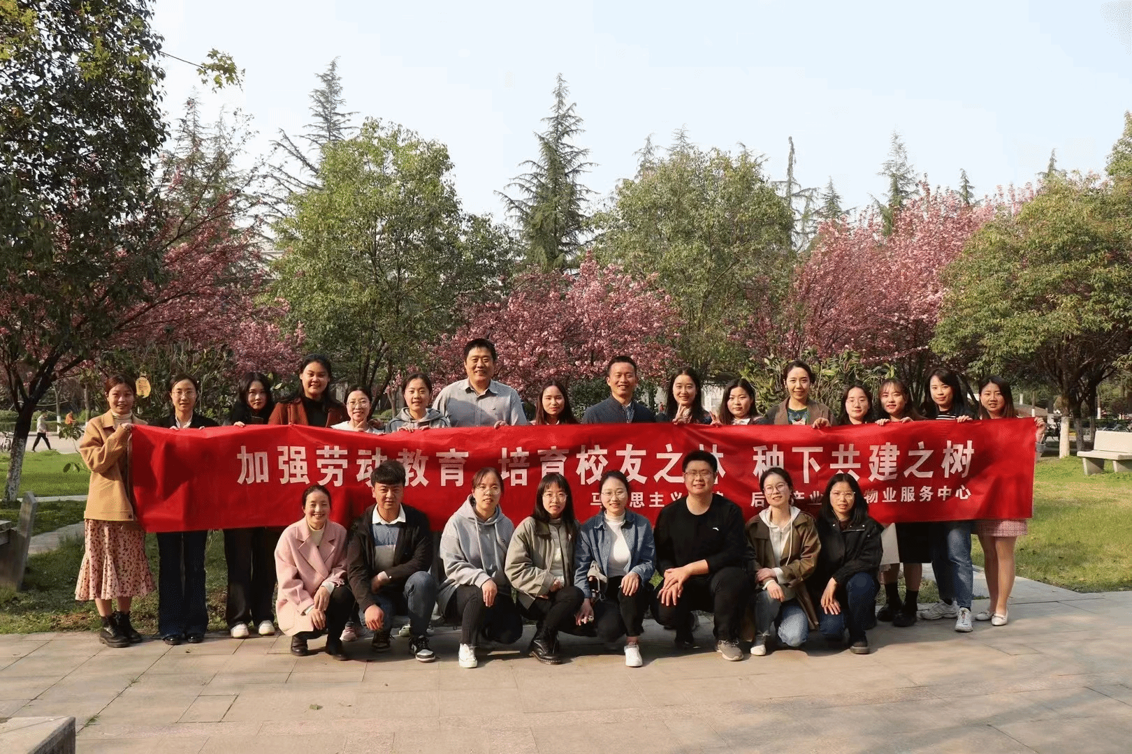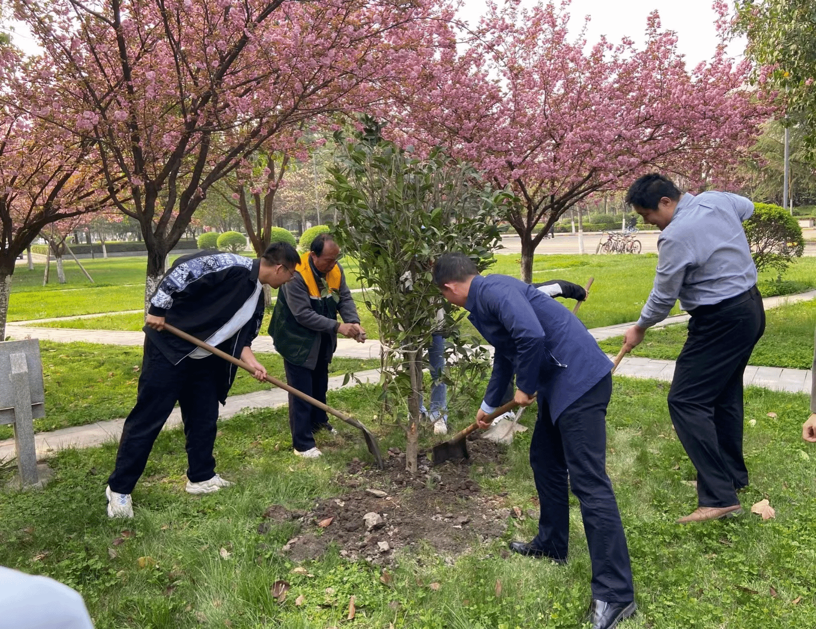 和后勤产业集团物业服务中心共同开展“加强劳动教育 培育校友之林 种下共建之树”主题教育活动。在学院党委副书记(主持工作)蒲传新、后勤产业集团周伟老师的带领下,学院机关党支部、后勤产业集团物业服务中心党支部及2023届毕业生一同在长安校区91国产