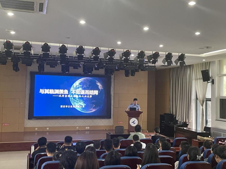 邀请西安市公安局高新分局民警为全体新生做反诈骗宣传主题教育,硕士生辅导员王换、博士生辅导员高红波和2023级新生参加此次教育活动,会议由91国产