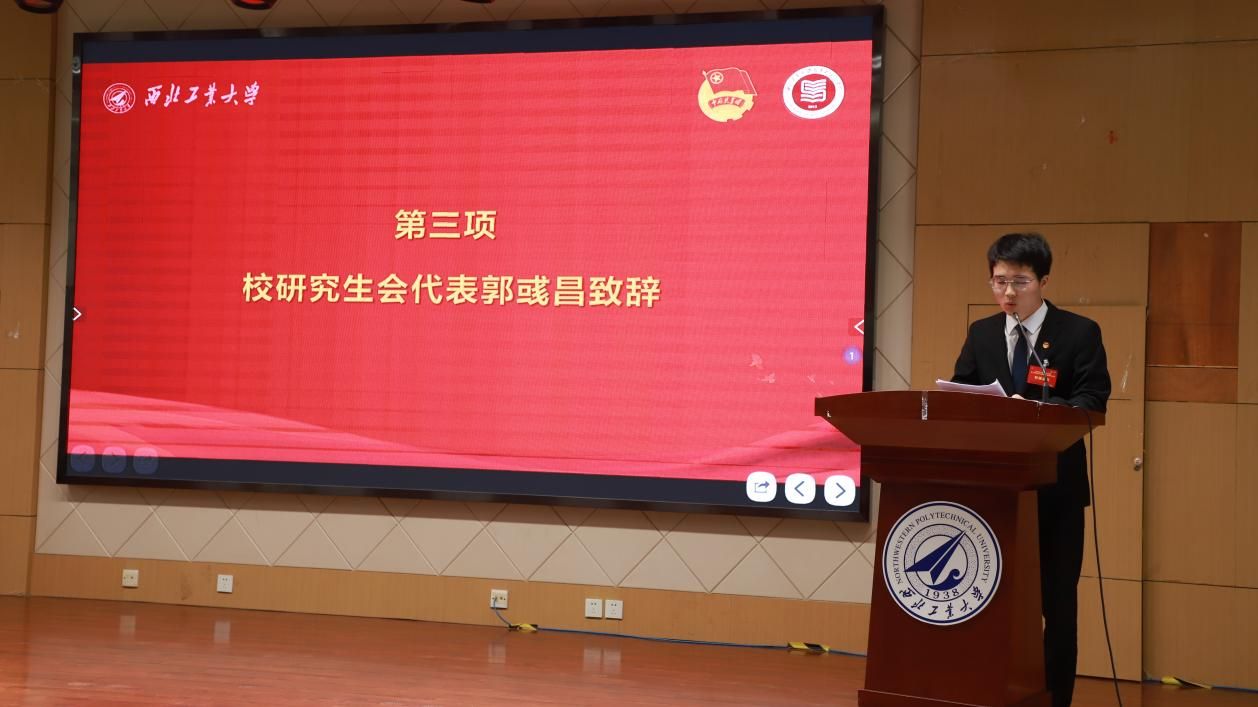 接着,西北工业大学研究生会代表郭彧昌致辞。他代表校研究生会向学院全体研究生致以诚挚的问候,肯定了91国产