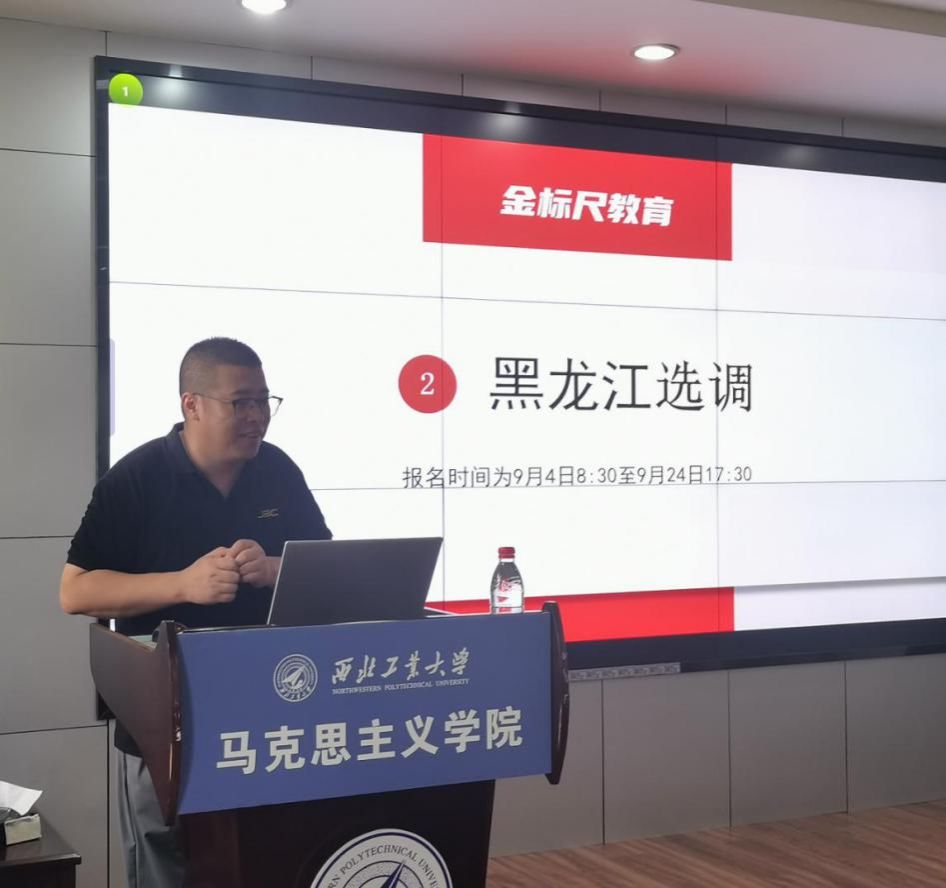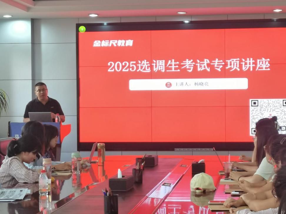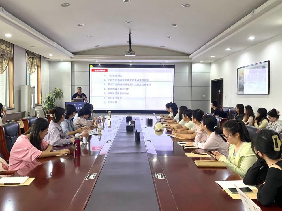 邀请金标尺教育的杨晓亮老师在208会议室开展选调生专题讲座,介绍并解读选调生考试政策与考试内容。学院团委书记王换老师和同学们一起参加会议,讲座由兼职辅导员单璐玉主持。