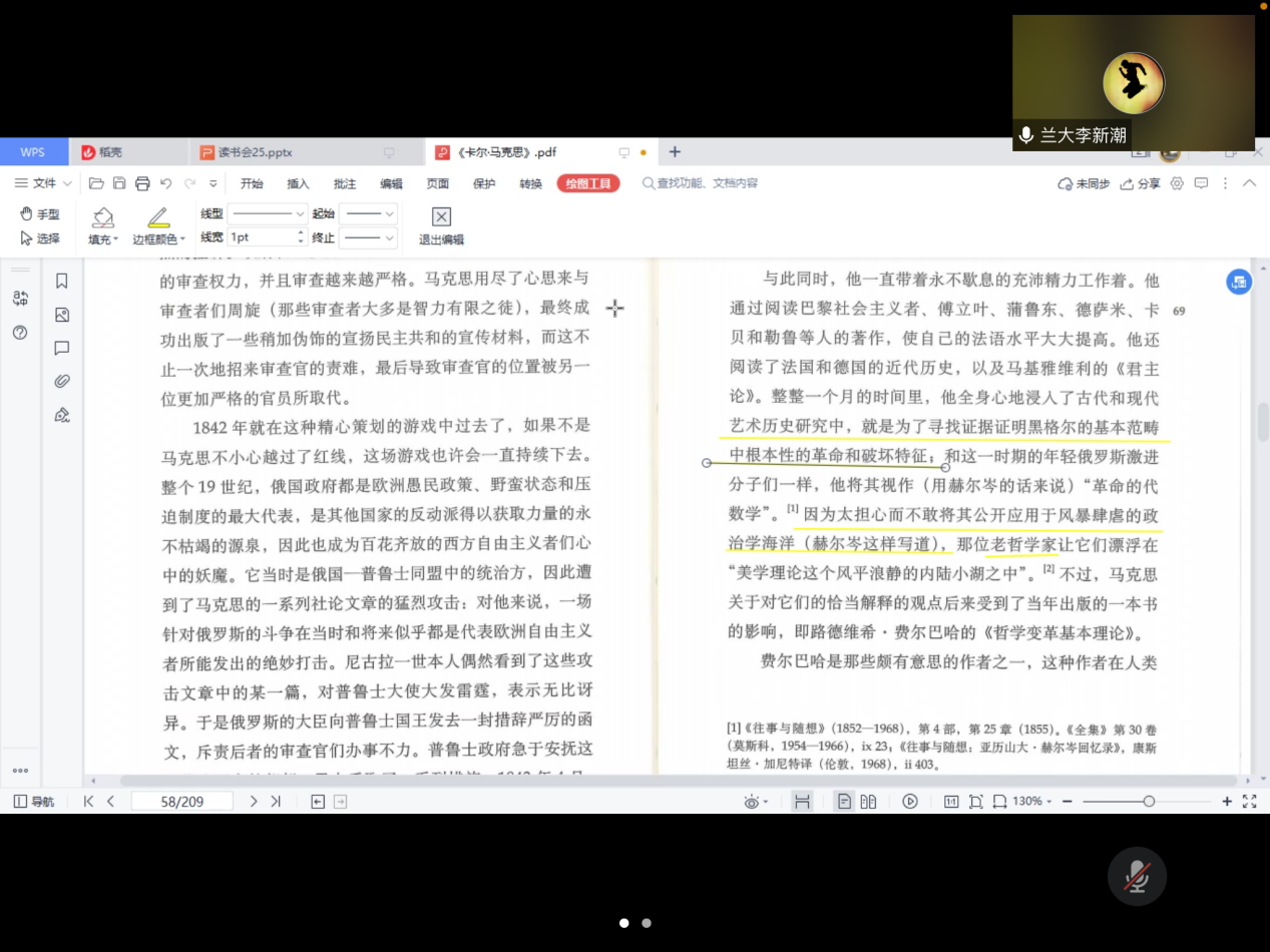 李新潮老师与同学们一起阅读以赛亚·伯林所著《卡尔·马克思:生平与环境》的第四章的内容,91国产