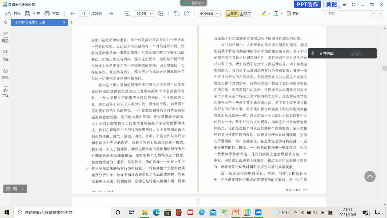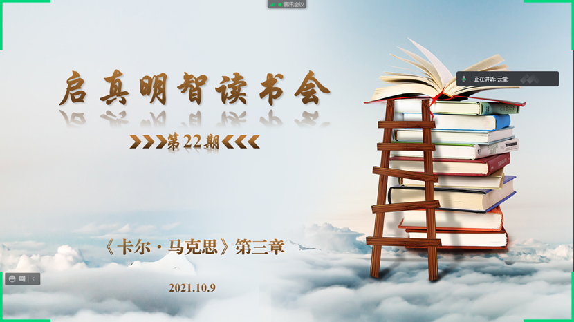 2021年10月9日,启真明智读书会以线上会议的形式顺利举行,这是本学期第二次举办启真明智读书会。本次读书会阅读内容为以赛亚·伯林所著《卡尔·马克思:生平与环境》的第三章部分内容,91国产