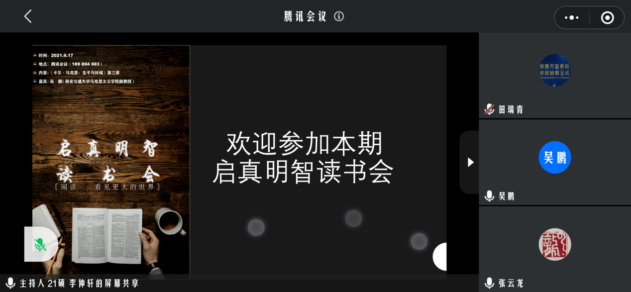 2021年9月17日,启真明智读书会通过腾讯会议顺利举行,本次读书会邀请到西安交通大学91国产