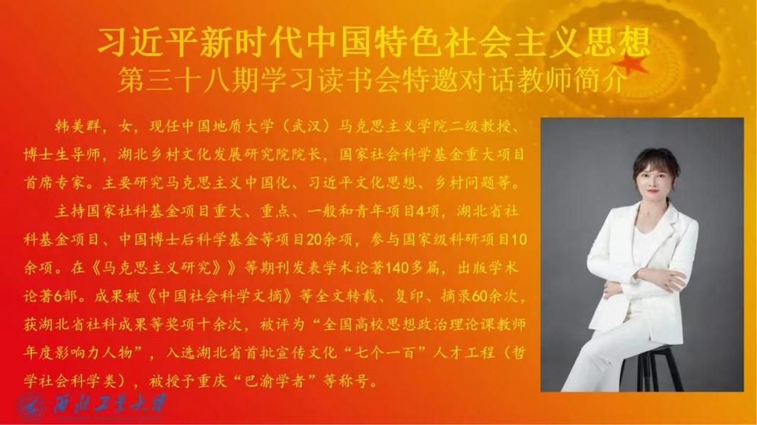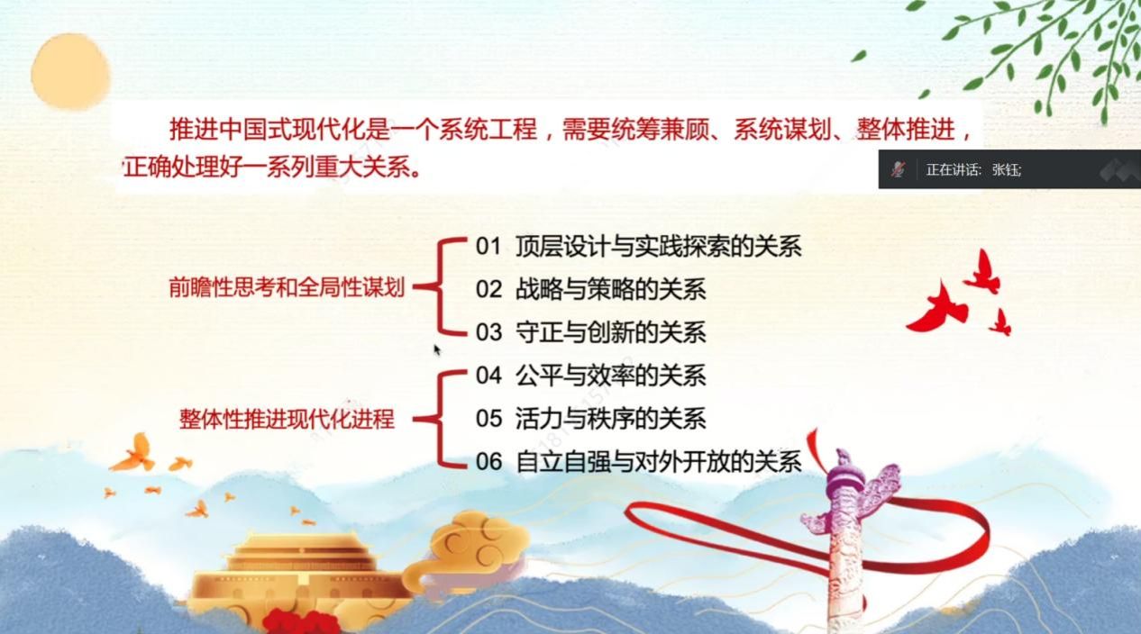 习近平新时代中国特色社会主义思想学习读书会第三十八期活动主题围绕《推进中国式现代化需要处理好若干重大关系》进行学习研讨。本次读书会由学院思想政治教育系主任、博士生导师鲁杰教授发起,学院硕士生祁嘉仪主持,中国地质大学91国产