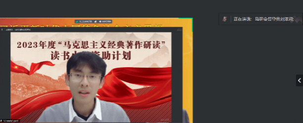在正式导读开始之前,由马研会督导组的刘洋河同学对“马克思主义经典著作研读”读书小组的资助情况进行简单的说明。首先,他对本小组入选马研会读书小组表示祝贺,其次,介绍了读书小组须知和一些注意事项。