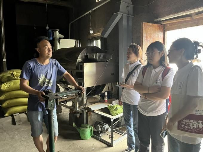 7月2日下午,实践队来到了长安区滦镇水稻种植基地进行研学,近距离观摩了北大村“千亩稻田”系统,与农民访谈“稻鱼技术”。如今的北大村作为高新区20个乡村振兴示范村之一,依托其“稻香北大”品牌,致力于打造集特色水稻田、观光农业、休闲养生等为一体的新型农业产业链。同学们不仅探索实践了“稻鱼合养”技术,并对此激发了浓厚兴趣,北大村所挖掘的现代农业的发展亮点也令同学们深受启发。