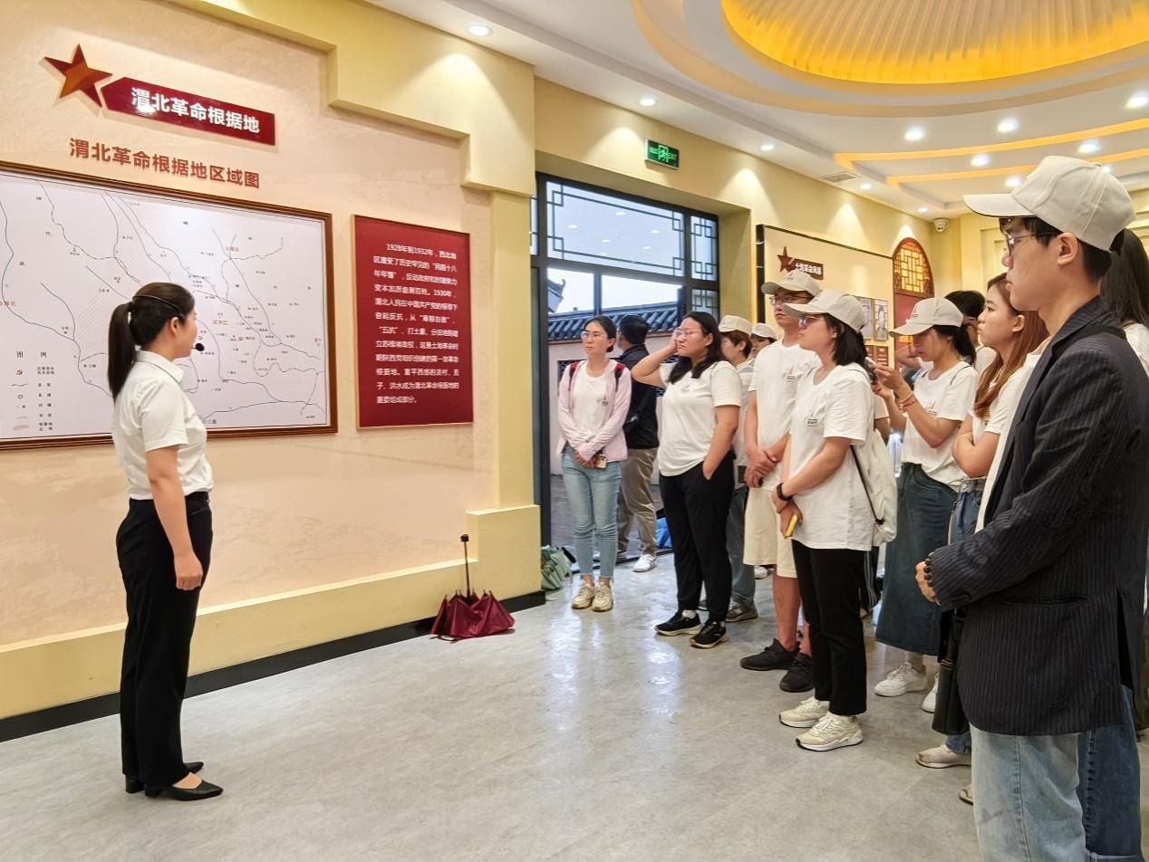 第二站,实践队员们驱车前往陕西省咸阳市泾阳县安吴镇安吴堡村,探访安吴战时青年训练班革命旧址。这里是抗日战争时期由西北青年救国联合会在安吴堡创办的战时青年训练班所在地,被誉为“青年的故乡”“抗日干部的摇篮”。通过了解学习安吴战时青年训练班的创建背景、发展过程和革命成果,大家深刻感受到了先辈们艰苦奋斗、不怕牺牲、无私奉献的崇高革命精神。铺陈革命历史的卷轴,仰望安吴青训班这颗照耀青史的红星,真实触摸到流淌于血脉的红色基因与青春力量,一同体悟着习近平总书记所说的:“革命博物馆、纪念馆、党史馆、烈士陵园等是党和国家红色基因库。要把红色资源作为坚定理想信念、加强党性修养的生动教材,讲好党的故事、革命的故事、根据地的故事、英雄和烈士的故事,加强革命传统教育、爱国主义教育、青少年思想道德教育,把红色基因传承好,确保红色江山永不变色。”
