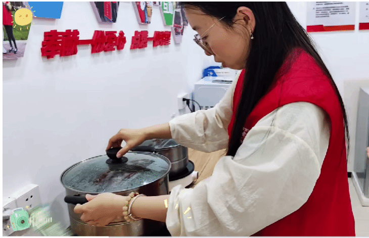 7月11日上午,志愿者携手社区儿童开展劳动实践体验活动,引导孩子们在亲身参与中培养尊重劳动、热爱劳动的美德。随后,组织集体观看专题节目《榜样9》,通过先进人物的感人事迹,激励他们汲取榜样力量,树立远大理想。下午,在社区工作人员与志愿者的有序组织下,孩子们化身“清凉小使者”,将亲手参与熬制的绿豆汤送给辖区内辛勤工作的环卫工人、保安、保洁人员以及部分社区居民。这一行动不仅传递了社区大家庭的关爱与敬意,也在实践中培养了孩子们的感恩意识与社会责任感。