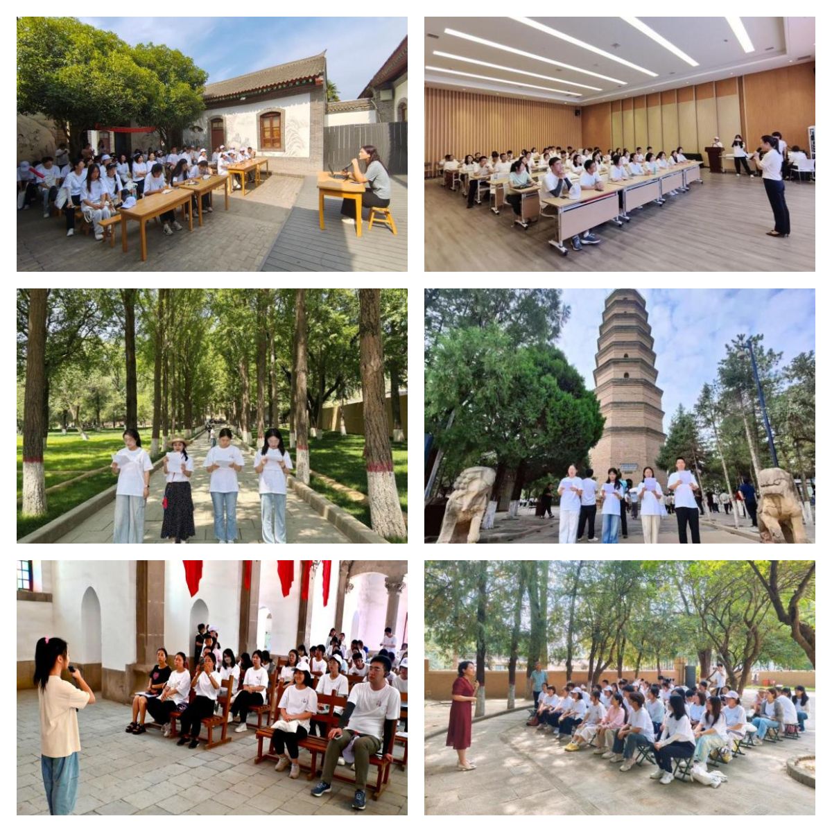 在八路军西安办事处纪念馆,张小雅老师为大家带来《抗战时期国际友人国际友人 如何讲好中国故事》专题思政课,讲述国际友人眼中的延安岁月及其感人故事,为新时代讲好中国故事提供了启发和参考。在甘泉县,为纪念中国人民抗日战争暨世界反法西斯战争胜利80周年,实践队利用休息时间,在团队负责人韩瑞欣的带领下,认真学习了习近平在纪念中国人民抗日战争暨世界反法西斯战争胜利70周年大会上的讲话,深刻领悟抗战精神中的爱国情怀、民族气节、英雄气概和必胜信念,更加筑牢了实践队员理想信念。在枣园革命旧址,实践队员赵婧雯、李悦、霍雨薇、梁晓涵围绕《为人民服务过时了吗?》开讲,共同探讨新时代青年党员如何更好地践行为人民服务宗旨。在延安革命纪念馆,实践队认真聆听《“诗言志”——小炕桌上书写千年绝唱》《站在最大多数劳动人民的一面》和《没有共产党就没有新中国》等思政课,从革命文物中深刻领悟中国共产党人为民族独立和人民解放不懈奋斗的初心与使命,更加坚定了为实现中华民族伟大复兴而团结奋斗的信念和决心。在杨家岭革命旧址,纪念馆老师带来了《中国的希望在延安》专题思政课,围绕抗战时期陈嘉庚访问延安的故事,讲述了“一顿饭背后的作风对决”,得出了“中国的希望在延安”的历史结论。在桥儿沟旧址,实践队聆听当地小学生志愿者带来的精彩分享。在宝塔山上,实践队员刘书文、王柯楠、杨振吉、王海博围绕《宝塔山下的誓言》开讲,用铿锵有力的话语,发出“请党放心,强国有我”的西工大青年誓言。岁月无言,丰碑永铸。实践队通过在不同革命旧址学习和开展多样的思政课,让革命文物“说话”,提高了运用革命文物讲思政课的本领,在学思践悟中坚定理想信念。