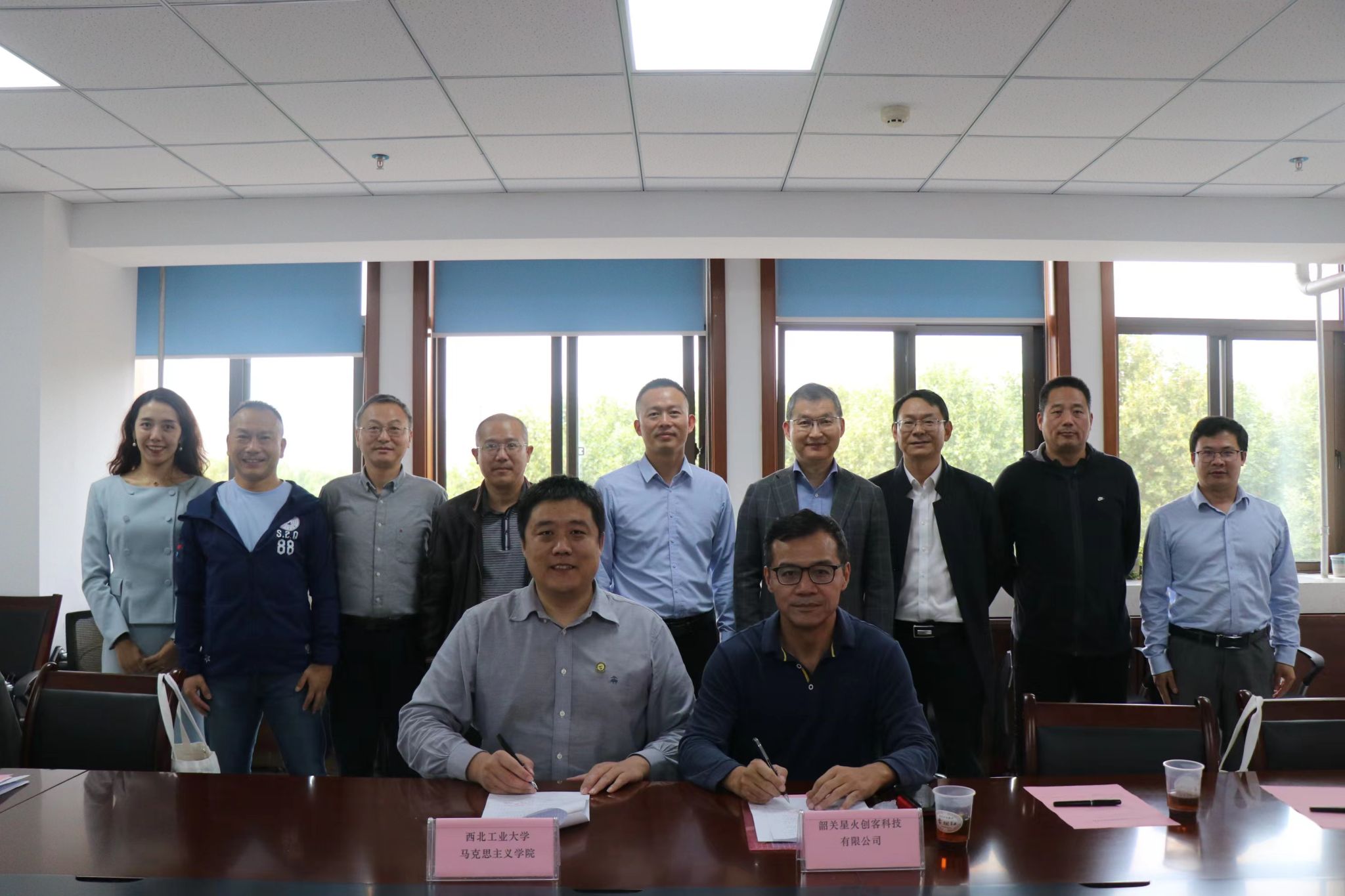 与韶关星火创客科技有限公司共建的西北工业大学大学生社会实践基地签约仪式在友谊校区勇字楼702举行,韶关星火创客科技有限公司代表、校友刘宏、北京校友会秘书长周国华,校友沈飚、孙志强、谢小钢、贺炜、唐樟春、周桓等一行十余人来学院调研并签约,西工大校友会副秘书长孙武斌、91国产