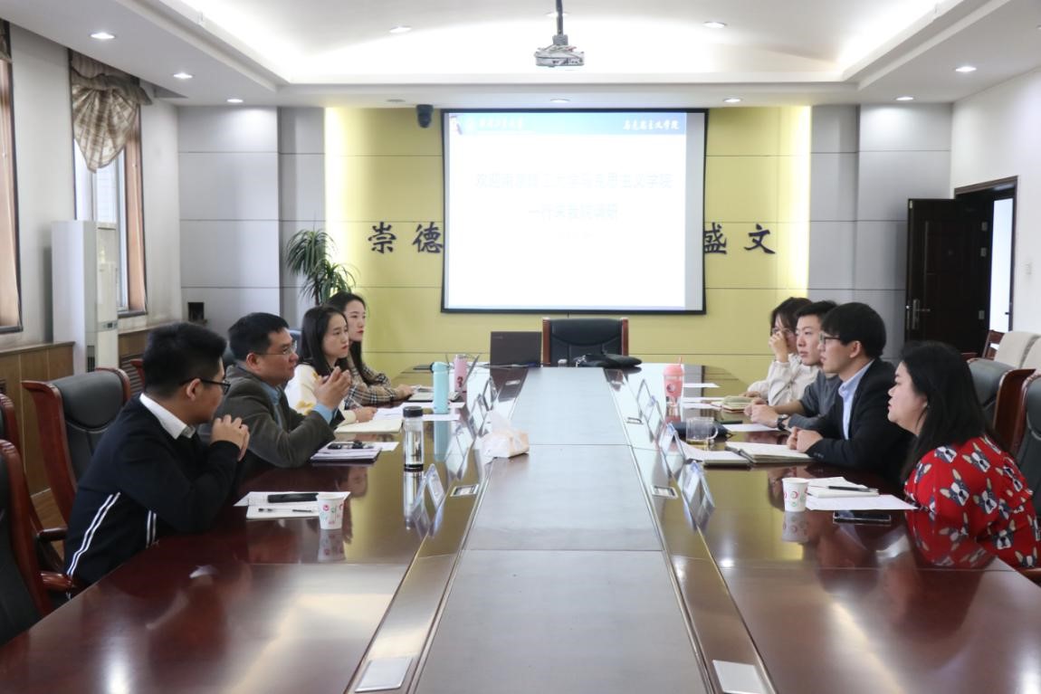 南京理工大学马院同仁对我院学生就业指导、加强社会实践、党员教育管理等方面表示了浓厚的兴趣,李军介绍了南京理工大学马克思主义院在学生社团活动、社会实践、研究生管理等方面的做法和体会。