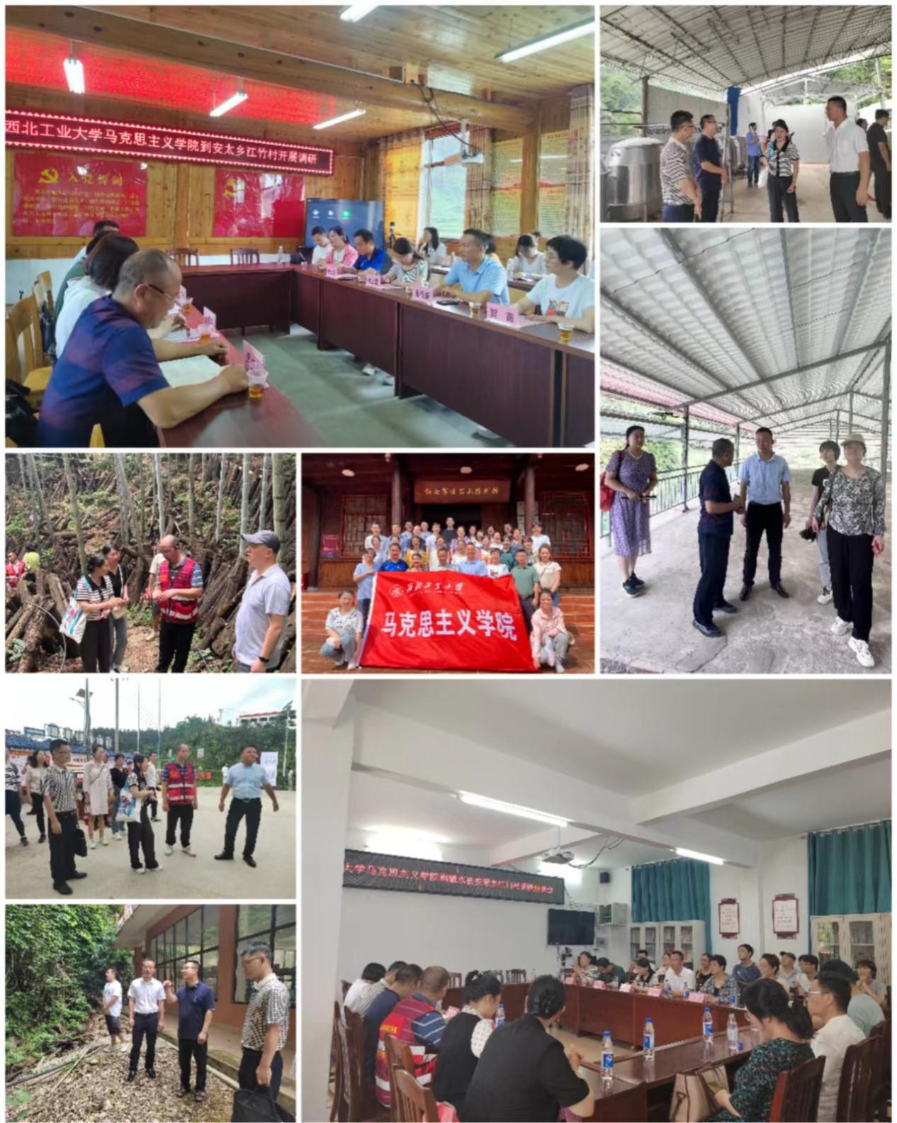 7月3日-4日,学院教师一行前往融水县安太乡江竹村和小桑村、安陲乡江门村,与江竹村第一书记陆风、村支书潘进久就乡村基层建设、乡村振兴、生态文明建设等方面进行了座谈交流,并参观了红七军纪念馆、江门村产业园、江门村党群服务中心等地,对东西部协作帮扶基地、乡村产业振兴发展、少数民族文化、党建引领基层治理情况等进行了深入调研,实地考察了林泉茶厂、草珊瑚种植基地、八角种植基地等乡村产业振兴扶贫项目。融水县委组织部黄伟、县政府潘翠莲,安太乡人大主席戈云辉,安陲乡乡长肖汉全等参加了调研活动。