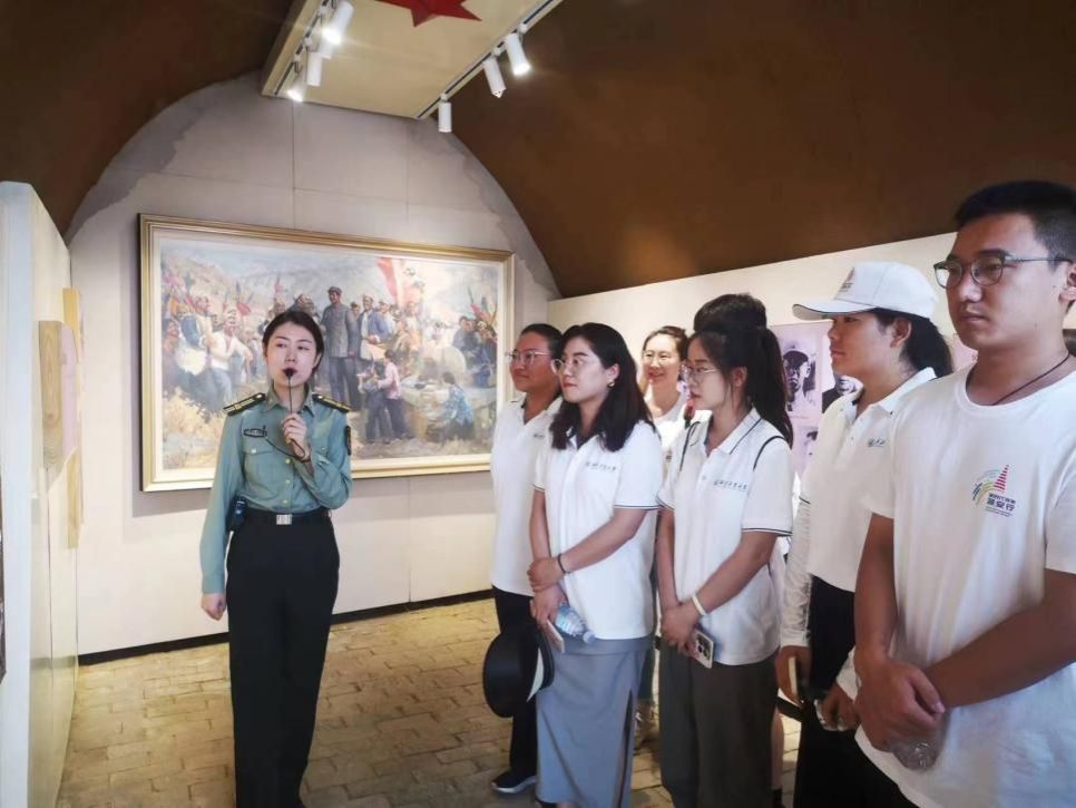 上午9时,实践队到达陕西省延安市甘泉县道镇象鼻子湾毛泽东雪地讲话旧址。在讲解员的带领下,实践队员们在雪地讲话旧址逐一参观了会师地遗址陈列室。陈列版上详细记载了当时发生的历史故事,展示柜中的一封封书信帮助我们再现当时的场景,这让新时代青年深切感受到了红军万里长征的艰辛与不易,更是体会到今天幸福生活的珍贵。随后,西北大学91国产
