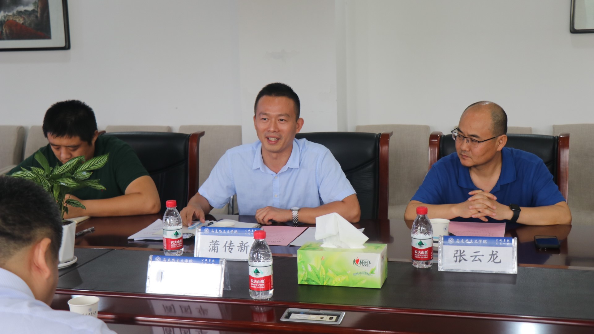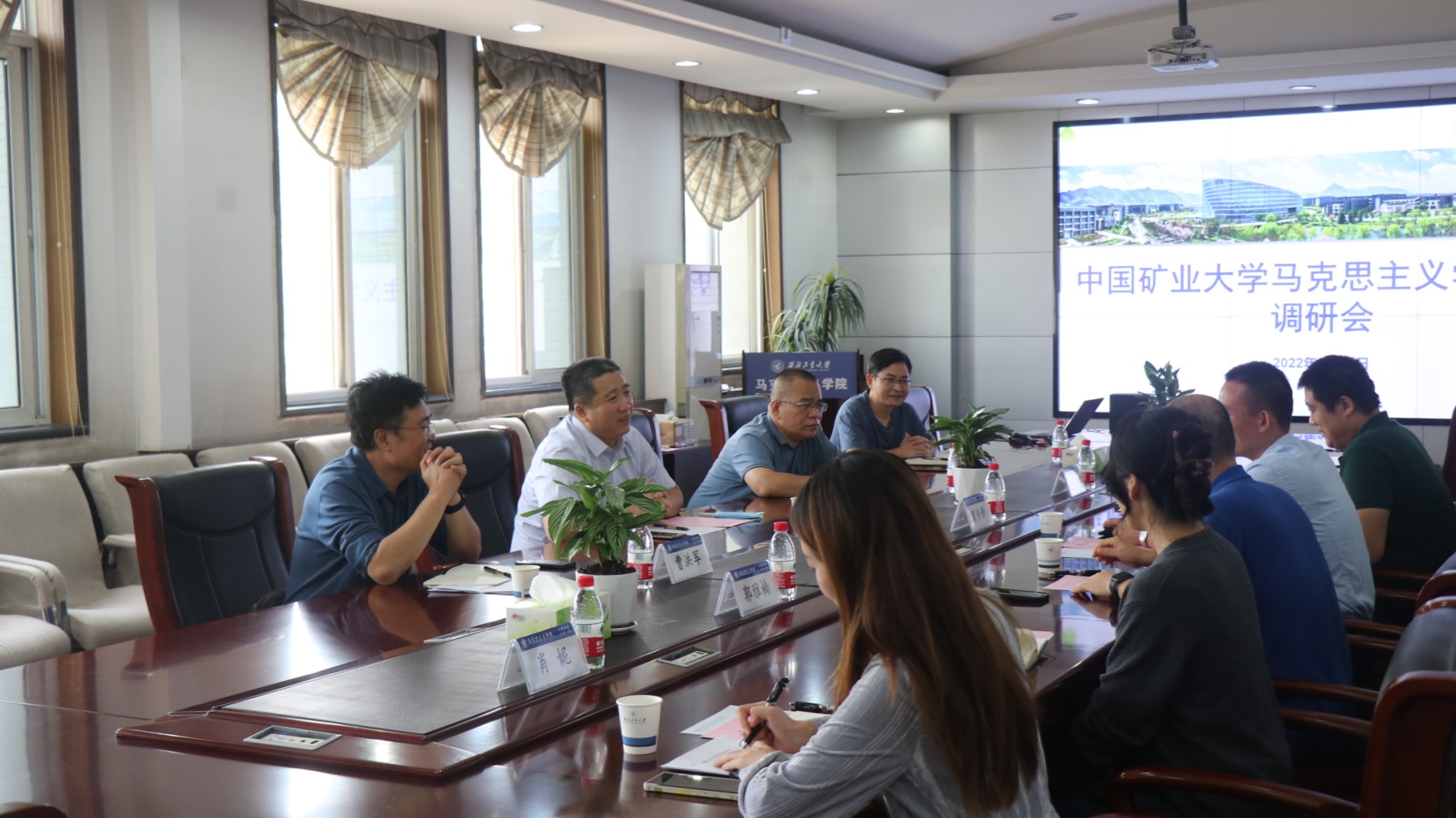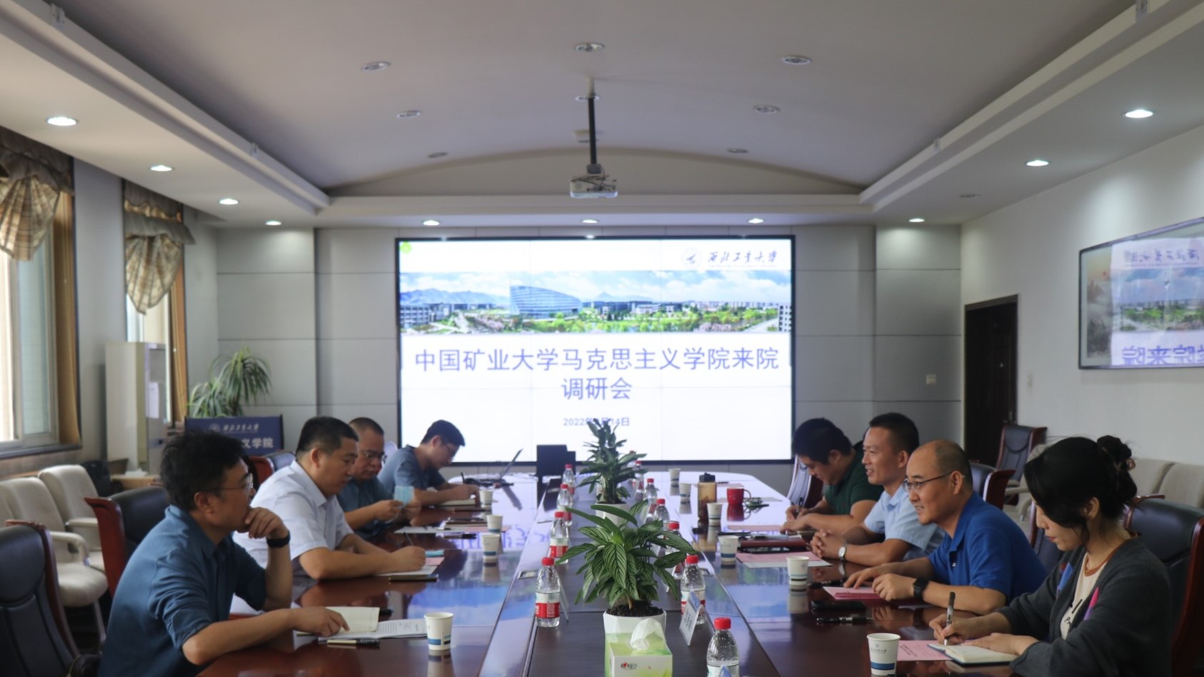 蒲传新代表马院对矿大马院一行表示欢迎,就学院研究机构、师资队伍、科研成果、教材建设、党建和学生工作情况等方面做了整体介绍。他介绍到,学校党委对91国产