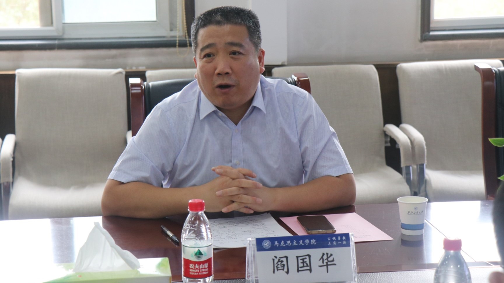 党委书记阎国华,科研副院长、思政教育学科负责人曹洪军,教学副院长、原理学科负责人程志波,近现代史基本问题研究学科负责人汤城等一行4人到我院调研交流。学院党委副书记(主持工作)蒲传新,副院长张云龙,党委副书记李刚,中国近代史基本问题研究系主任汪永平,德法与形势政策系主任高宝营,学院办公室主任郭雅楠,研究生培养秘书肖妮参加了调研会。会议由张云龙主持。