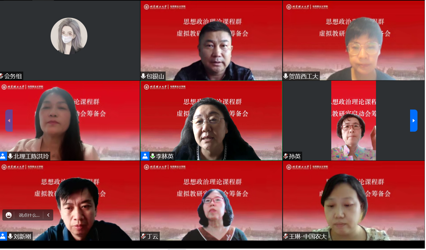 组成的思想政治理论课程群虚拟教研室联盟成功申报,入选全国第一批思想政治理论课程虚拟教研室试点单位。2022年8月11日下午,北京理工大学马院于腾讯会议云端组织召开思想政治理论课程群虚拟教研室启动会筹备会。西北工业大学马院副院长贺苗参与了本次线上会议。