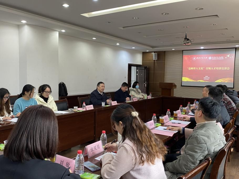 开展“总师育人文化”引领人才培养宣讲,学院党委书记蒲传新、一流课程团队成员、一线教师代表、学生代表及教学管理人员等参加了会议,会议由党委书记蒲传新主持。