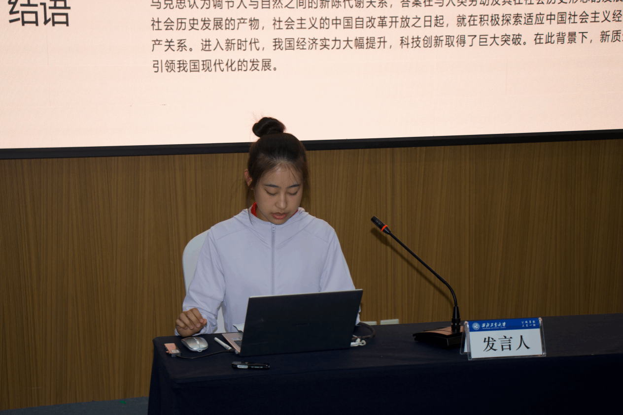 硕士研究生韩瑞欣从新质生产力破解西方现代性文明危机、创造人类文明新形态、开辟生产力跃迁新境界为出发点,分享了新形势下加快发展新质生产力的几点思考;陕西理工大学91国产